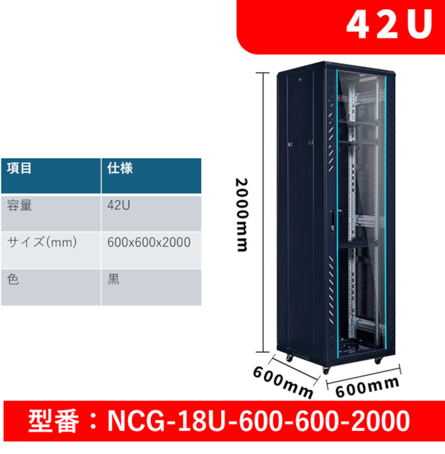 ラックマウントシステム42U 横600x奥行600x高2000 NCG-42U-600-600-2000