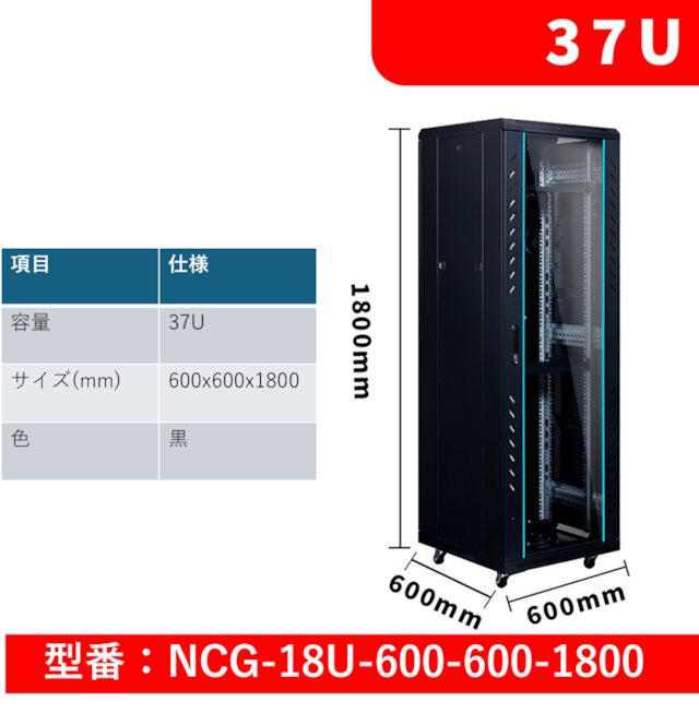 ラックマウントシステム37U 横600x奥行600x高1800 NCG-37U-600-600-1800